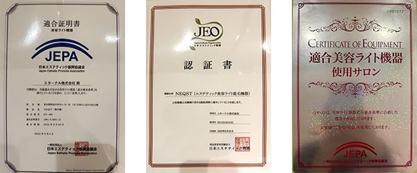 一般社団法人日本エステティック振興協議会から認定された安全な機器です。